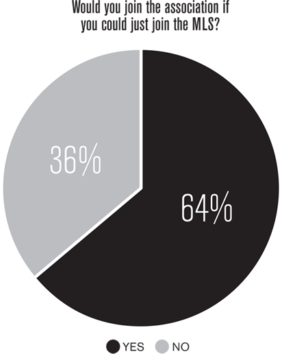 Results from this question were in line with results from when we asked this question in 2009 – just a 2 percent decrease in agents who would join the association if they could just join the MLS.