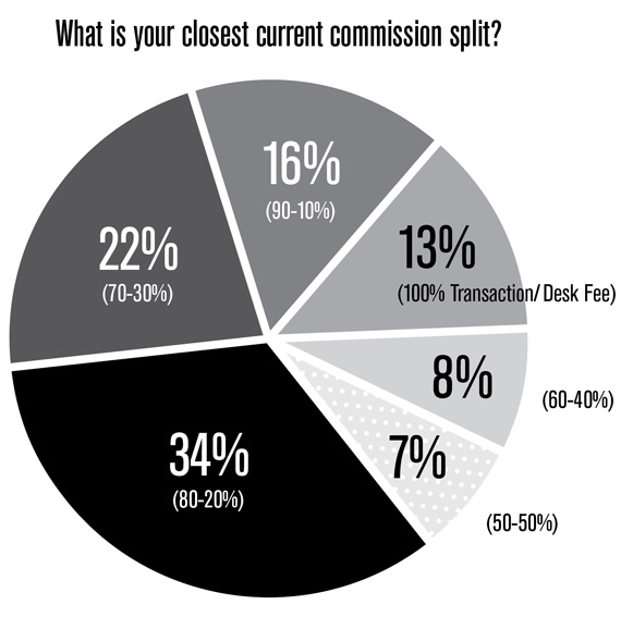 The average split is holding steady at about 79 percent after increasing from 74 percent in 2009 to 78 percent in 2010. And across every commission structure, agents showed a lower level of dissatisfaction – 100 percent commission deals showed a drop in dissatisfied agents (from 19 percent to 13 percent), and 50/50 splits showed a drop in dissatisfied agents (from 46 percent to 35 percent).