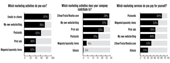 Agents spent more on marketing – about $3,500, or 5.8 percent of their income last year, compared to $2,335, or 4.9 percent of their income in 2010.