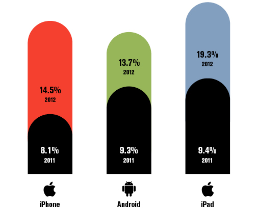In August of 2011, there were 35,658 unique logins from mobile devices. In August of 2012, there were 33,965 unique logins. The increase in the percentage of users is shown below.