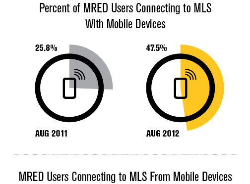 In August, MRED had 36,971 total users. In comparing this data to August of last year, the percent of agents logging in from mobile devices has increased to 47.5 percent. Last year, this percentage was 25.8 percent.