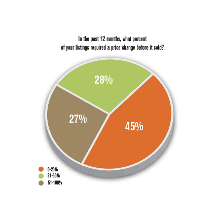 Rentals are still important and a big part of agents’ business, while REO deals are diminishing. Agents are also becoming more skilled at pricing properties – the majority of agents, 45 percent, changed the price of 0 to 20 percent of their properties before they sold.