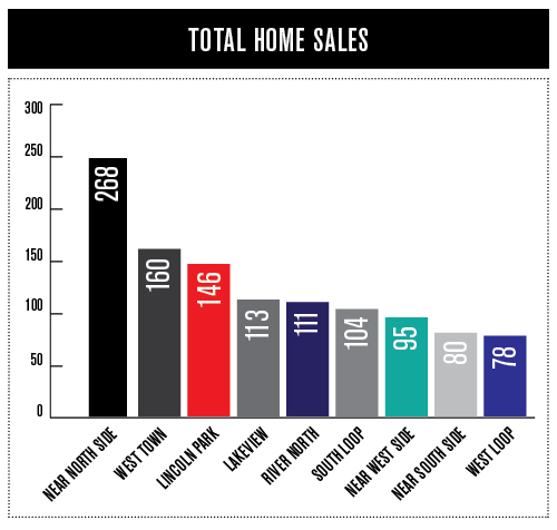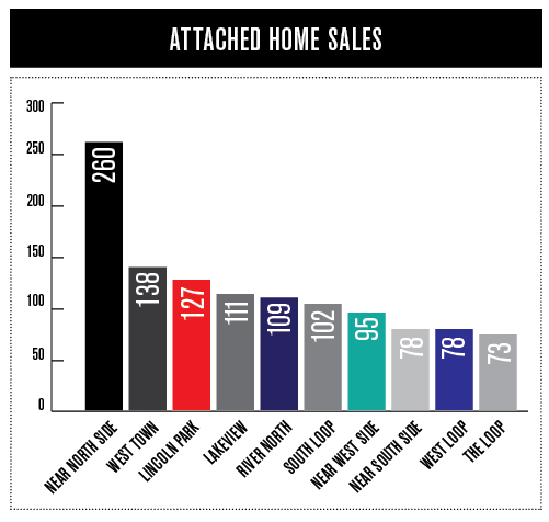 Check out our graphs below and see what neighborhoods have increased or decreased in sales since last month (South Loop, for example, seems to be losing its sales pace), which are broken down by total home sales, detached home sales and attached home sales (which includes townhouses and condos):