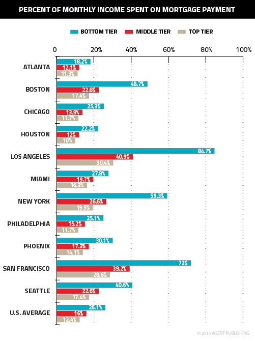 Nationwide, working-class homeowners now devote 26.1 percent of their income to housing, and in the higher-priced markets of the East and West Coasts, the numbers are jaw dropping.