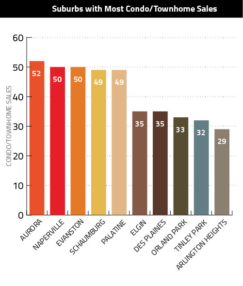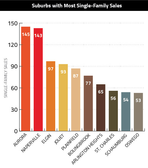 Aurora and Naperville are still No. 1 and 2, but their advantage over other markets has lessened considerably. Also of note are the strong fourth- and fifth-place showings for Schaumburg and Palatine, where sales increased 32.4 and 36.1 percent, respectively.