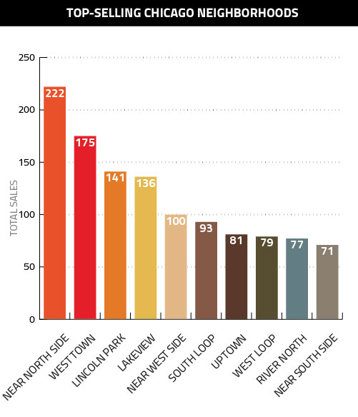 Though the Near North Side is hardly a surprise at the top of the pack, West Town turned in a strong second-place showing, with sales in the neighborhood rising 25 percent from March to April.