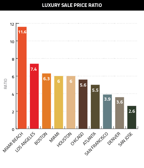 This graph shows the luxury sales price ratio for the nation’s largest metro areas: