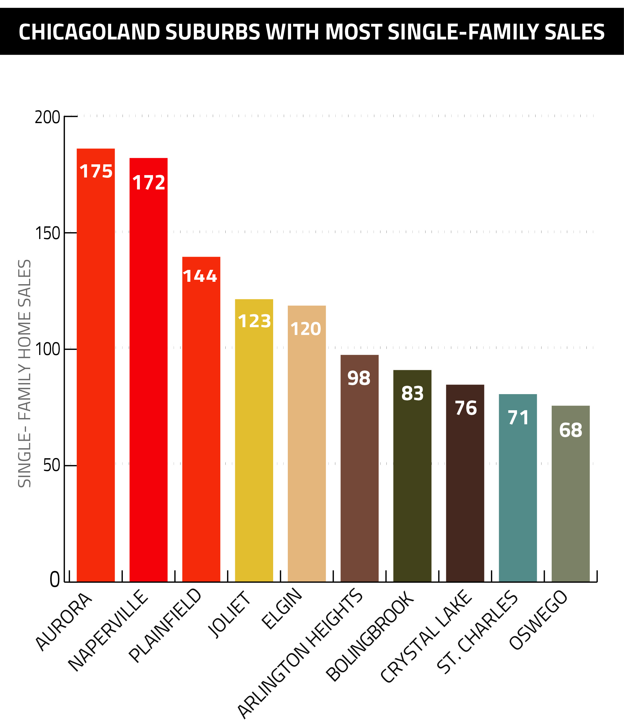The graph below features the Chicagoland’s suburbs with the most single-family sales: