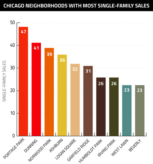 Other notable markets included Norwood Park (where sales rose 14.7 percent) and Humboldt Park (where sales rose 52.9 percent). Interestingly, Ashburn, which is normally the top single-family market in the city, came in at No. 4.