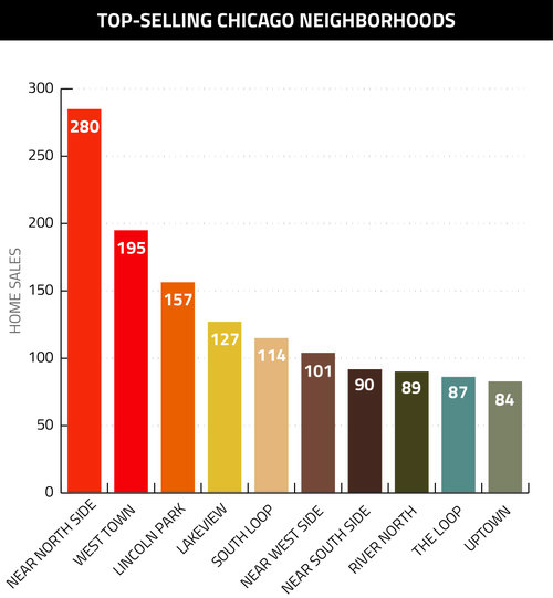 Notable increases included: Lincoln Park (14.4 percent); Near North Side (27.4 percent); Near South Side (26.8 percent); and finally, the Loop, where sales shot up 65.4 percent.