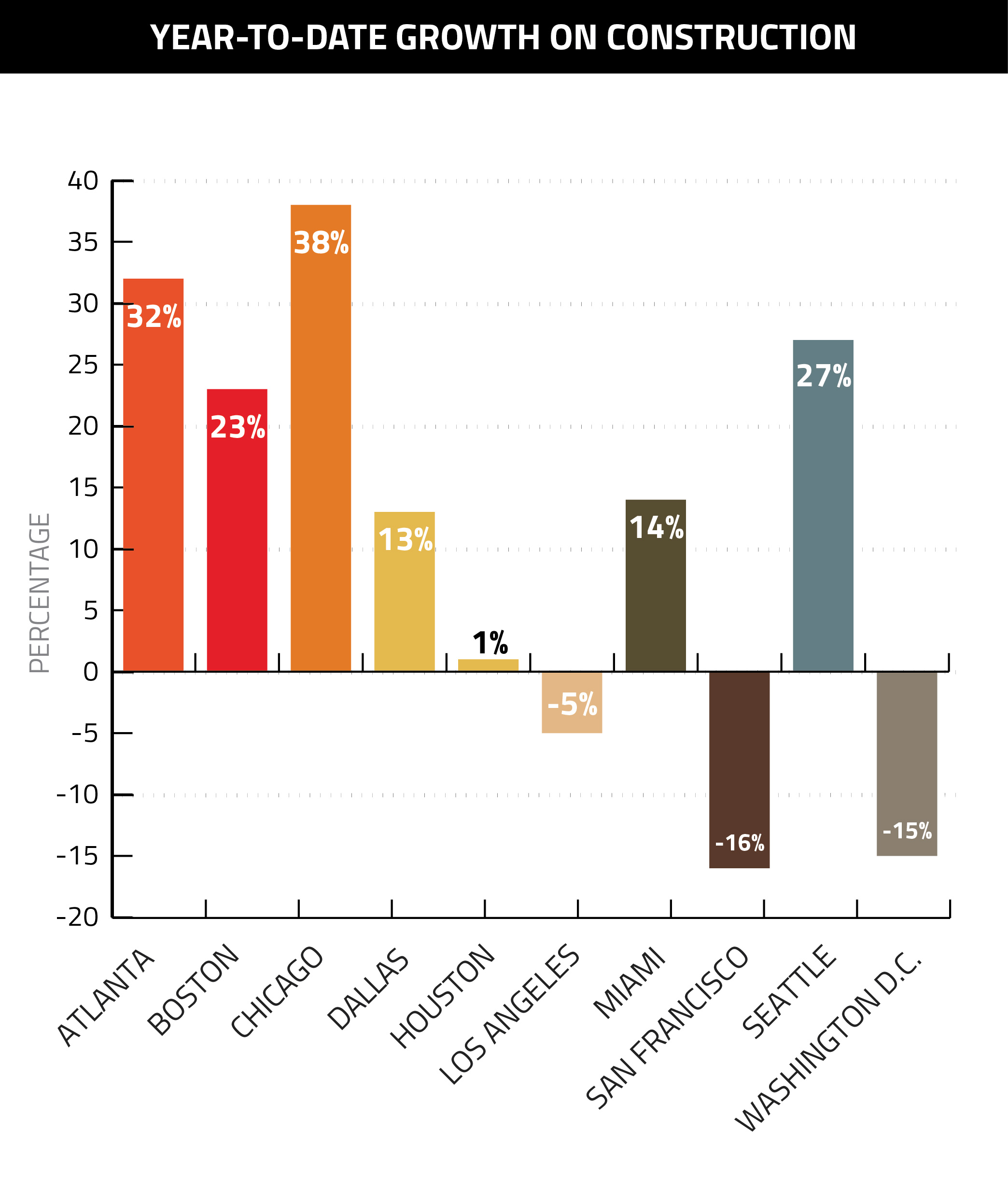 Even when analyzing more reliable year-to-date numbers, Chicagoland’s construction market still had a distinct edge:
