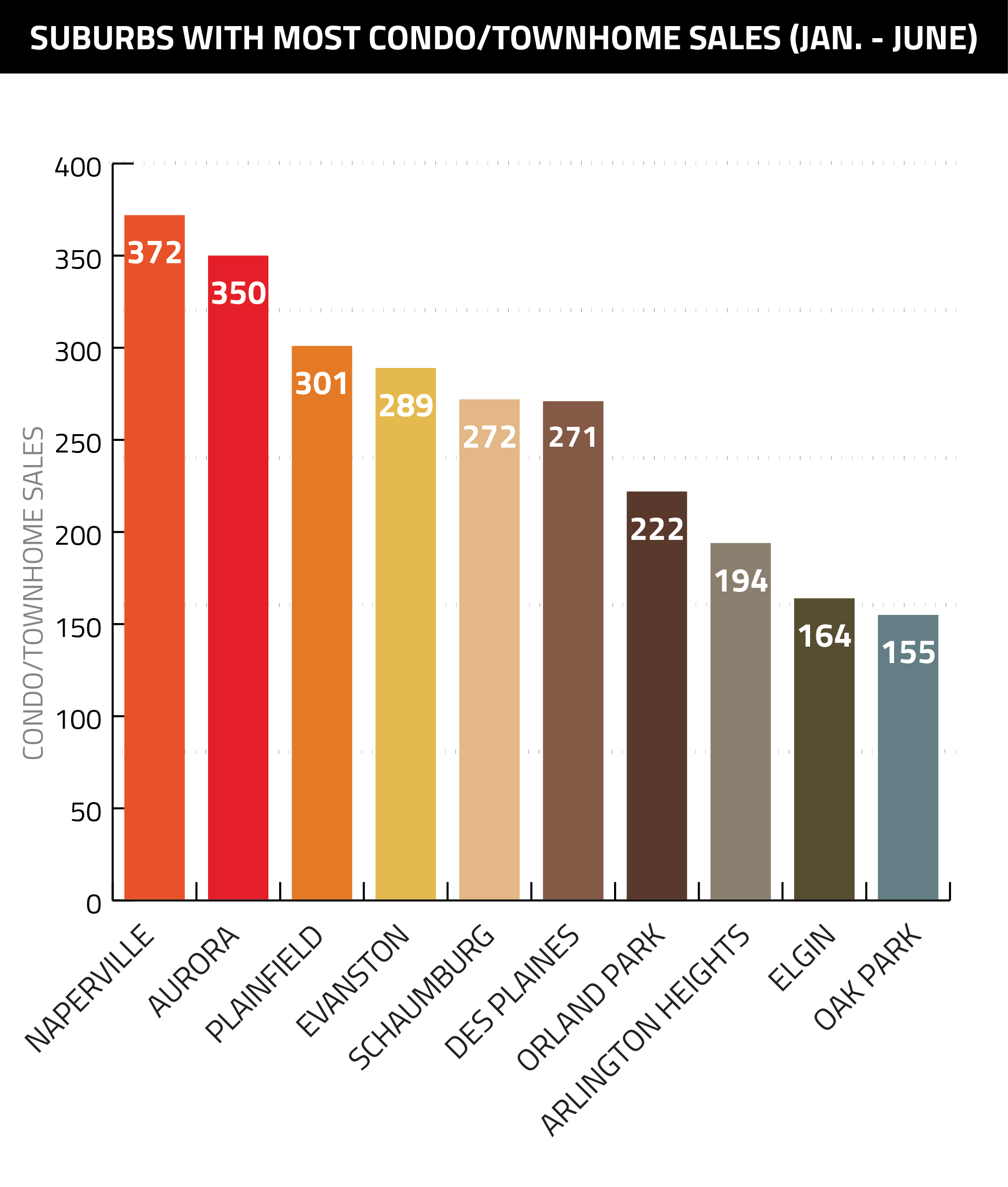 Even in the attached marketplace, Naperville, Aurora and Plainfield are still at the top of the pack, but Evanston joins the fray at No. 4, and Des Plaines, Orland Park and Oak Park are all new additions.