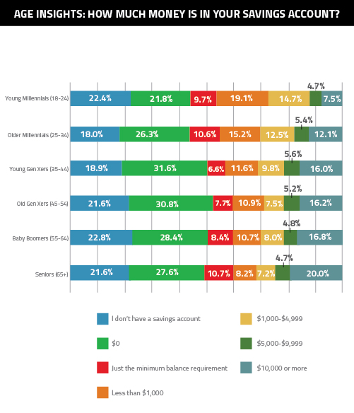 That alarming statistic was the main finding of a Google Consumer Survey that GoBankingRates, a national website that tracks interest rates, recently conducted. Among the survey’s 5,006 respondents, 28 percent stated they have no money in their savings account, while 13 percent had less than $1,000 and 21 percent lacked a savings account entirely.