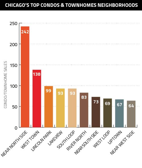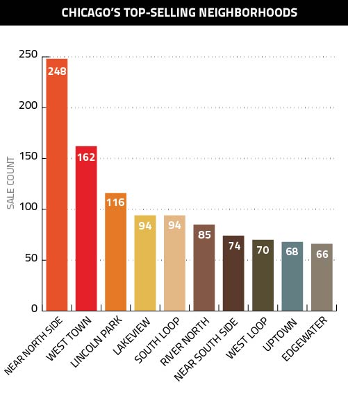 As usual, the Near North Side was the city’s top-selling neighborhood, and by a wide margin – its 248 sales were 53.1 percent higher than second-place West Town.