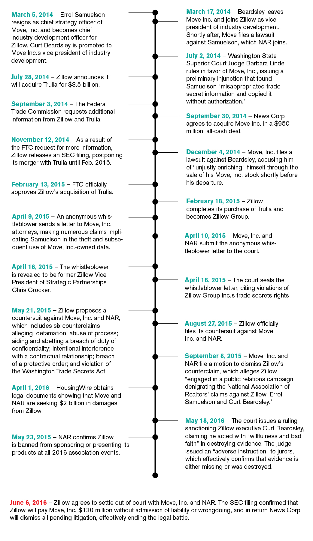 It began March 2014, when Errol Samuelson and Curt Beardsley resigned their positions with Move, Inc. for executive roles at Zillow. Their departures ignited a chain reaction that led to a May 18, 2016 ruling that validated claims that Beardsley, with “willfulness and bad faith,” destroyed evidence.