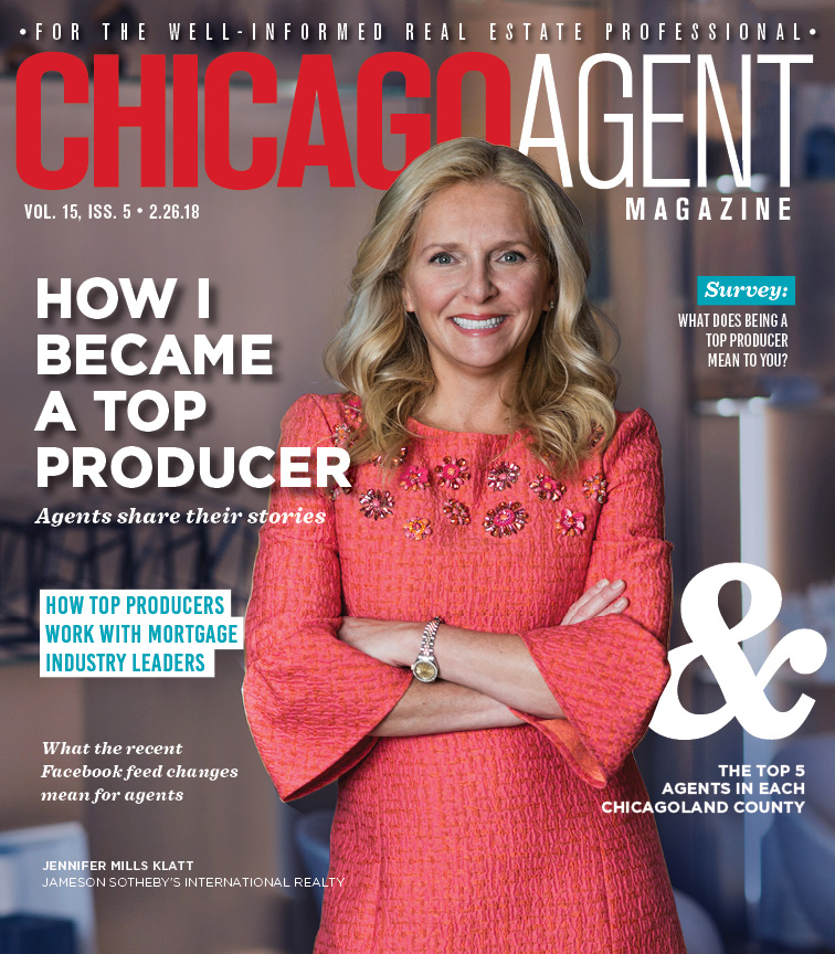 Top producer awards are usually handed out by individual brokerages or local Realtor associations, but standards for these awards vary. The Chicago Association of Realtors, for example, in 2017 recognized those who sold more than $23 million with awards at three levels — platinum, gold and silver — for both individuals and teams. The association maintains categories for overall sales volume as well as number of units sold. [See the sidebar on page 26 for a look at how each Chicagoland organization names top producers.] Meanwhile, brokerages have different standards for recognizing top producers. Some are the top earners of their brokerage nationwide, while some are top producers of certain areas. But for most, being labeled a top producer is a validation of a lot of hard work.