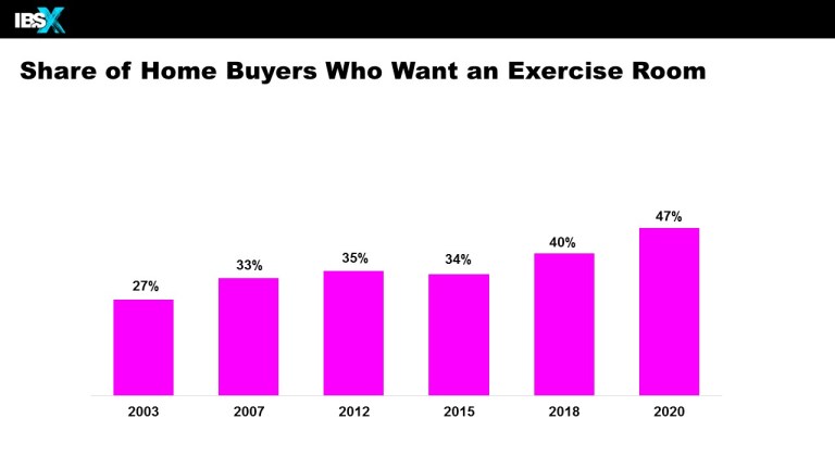 The National Association of Home Builders’ new report “What Home Buyers Really Want” shows that 47% of buyers say a home gym is either essential or desirable. The popularity of home gyms was already on the rise, but the pandemic accelerated the trend, bumping it up a full 20 percentage points from 2003.