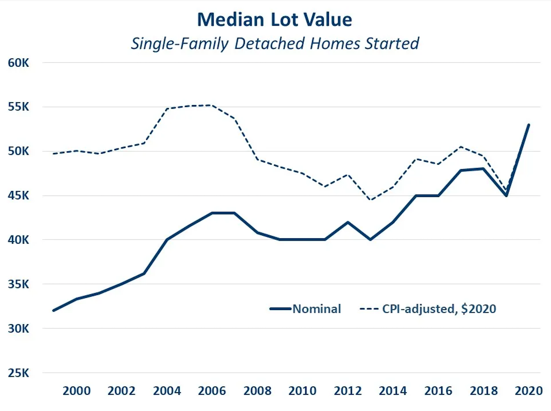 Lot values for single-family detached (SFD) spec homes are surging, according to a report from the National Association of Home Builders. The Census Bureau’s Survey of Construction shows that the overall value for lots started in 2020 has increased 18%: a significant and unprecedented jump. However, these findings are in line with other current building factors including the cost of materials as well as increased demand and supply chain issues caused by the ongoing pandemic.
