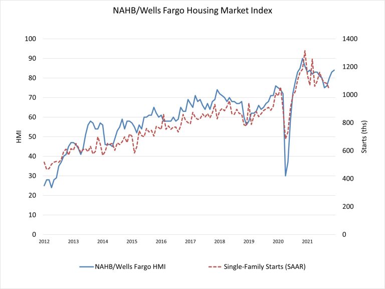 “The most pressing issue for the housing sector remains lack of inventory,” NAHB chief economist Robert Dietz said in a press release. “Building has increased, but the industry faces constraints, namely cost/availability of materials, labor and lots. And while 2021 single-family starts are expected to end the year 24% higher than the pre-Covid 2019 level, we expect higher interest rates in 2022 will put a damper on housing affordability.”