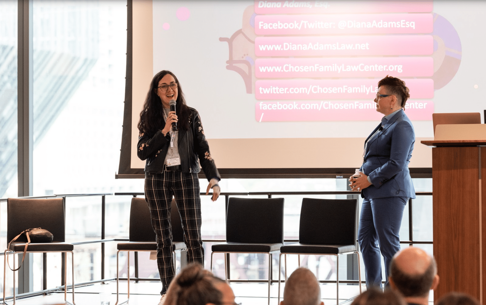 Diana Adams, president of the Chosen Family Law Center, was the keynote speaker. As an activist and attorney, they have spent their career trying to expand U.S. laws to protect non-nuclear families.
