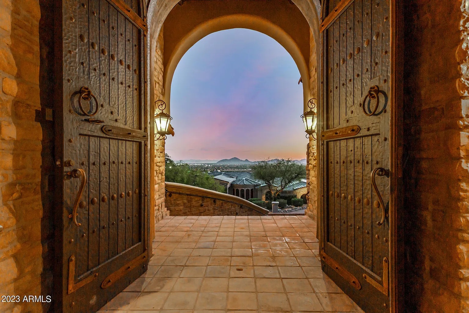 From its grand, limestone foyer to the hand-painted ceiling masterpiece, this property in Scottsdale’s Ancala Country Club is reminiscent of a medieval fortress, straight out of a storybook.