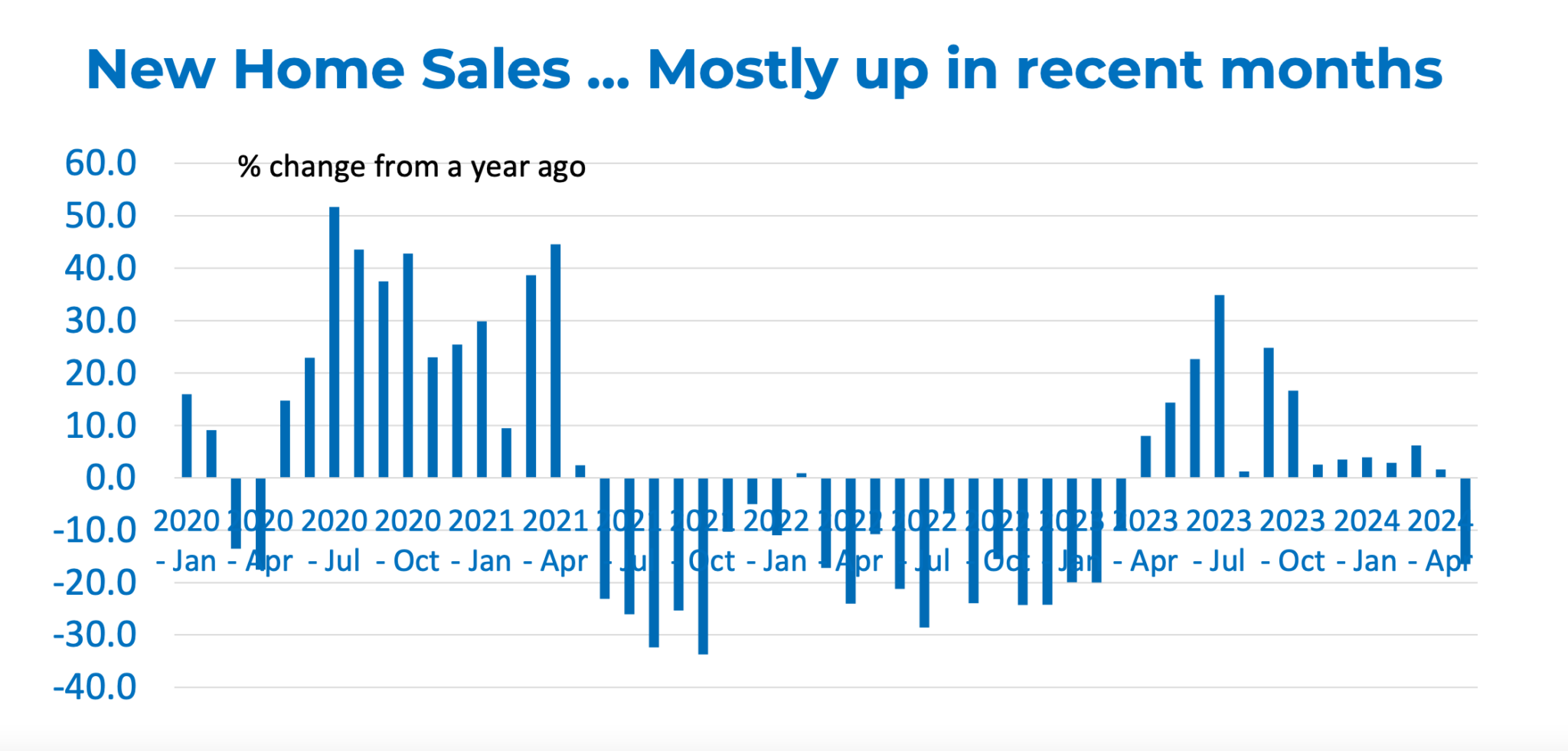 That pattern holds true in 2024, save for a recent drop in May. “Interestingly, for the past 12 months, for the most part … sales were rising, because [builders] were able to create inventory … they just have the think about the buyers — more inventory to get more sales done,” Yun said.