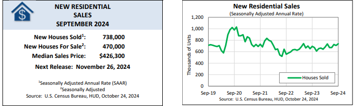 The median price of a new home sold during September jumped to $426,300 from $410,900 in August. Year over year, the median price was a touch higher than the $426,100 price of September 2023.