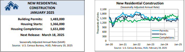 Meanwhile, total housing starts, which include single family and multifamily, fell 9.8% month over month and 0.7% year over year in January to an annual rate of 1,366,000 starts, according to the U.S. Census Bureau and the U.S. Department of Housing and Urban Development. Single-family starts were down 8.4% month over month and 1.8% year over year.