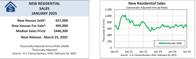 Specifically, new-home sales fell 10.5% to a seasonally adjusted annual rate of 657,000 residences from an upwardly revised rate of 734,000 in December, according to the U.S. Census Bureau and the U.S. Department of Housing and Urban Development.