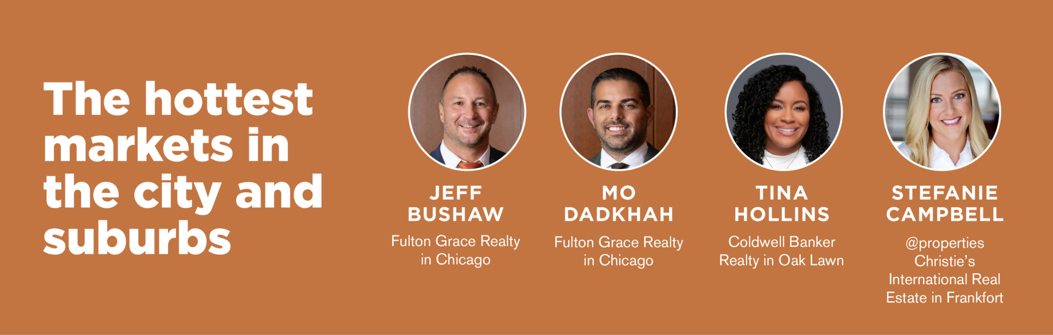 In the northwestern suburbs, Wheeling and Mount Prospect are emerging and close to the popular suburbs of Glenview, Northbrook, Buffalo Grove and Deerfield, Bushaw says. Palatine and Schaumburg are hotter than ever before, and Prospect Heights and Rolling Meadows are fringe areas gaining in popularity.