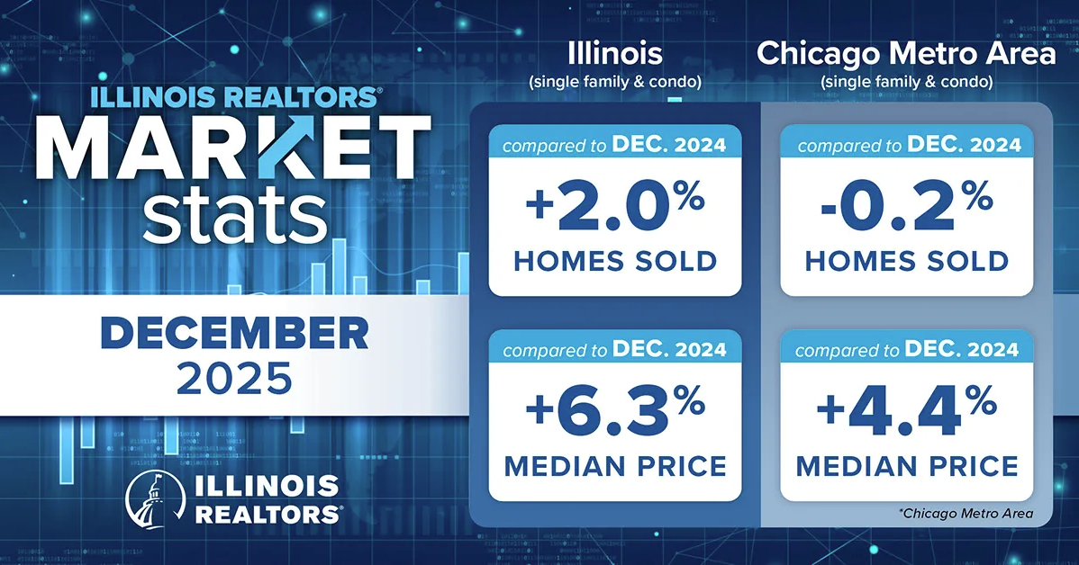 “December reflected a market that remains active, with prices holding firm amid continued supply challenges. Across the year, tight inventory was a defining factor shaping the market,” said Jeff Kolbus, president of Illinois REALTORS® and president and owner of RE/MAX Traders Unlimited in Peoria. “In 2026, we expect improvement to be steady, with affordability and mortgage rates continuing to influence outcomes.”