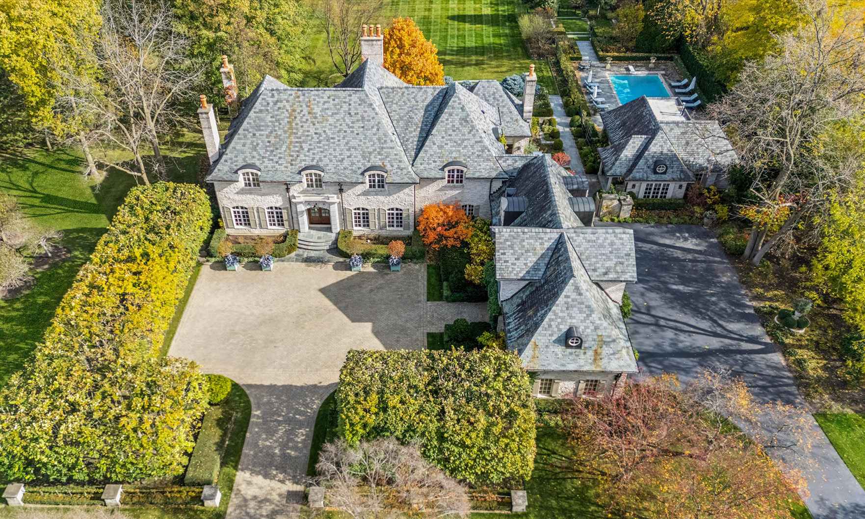 This lovely French Normandy-inspired stone custom home was built in 2007 by Havlicek Builders and exudes casual elegance.