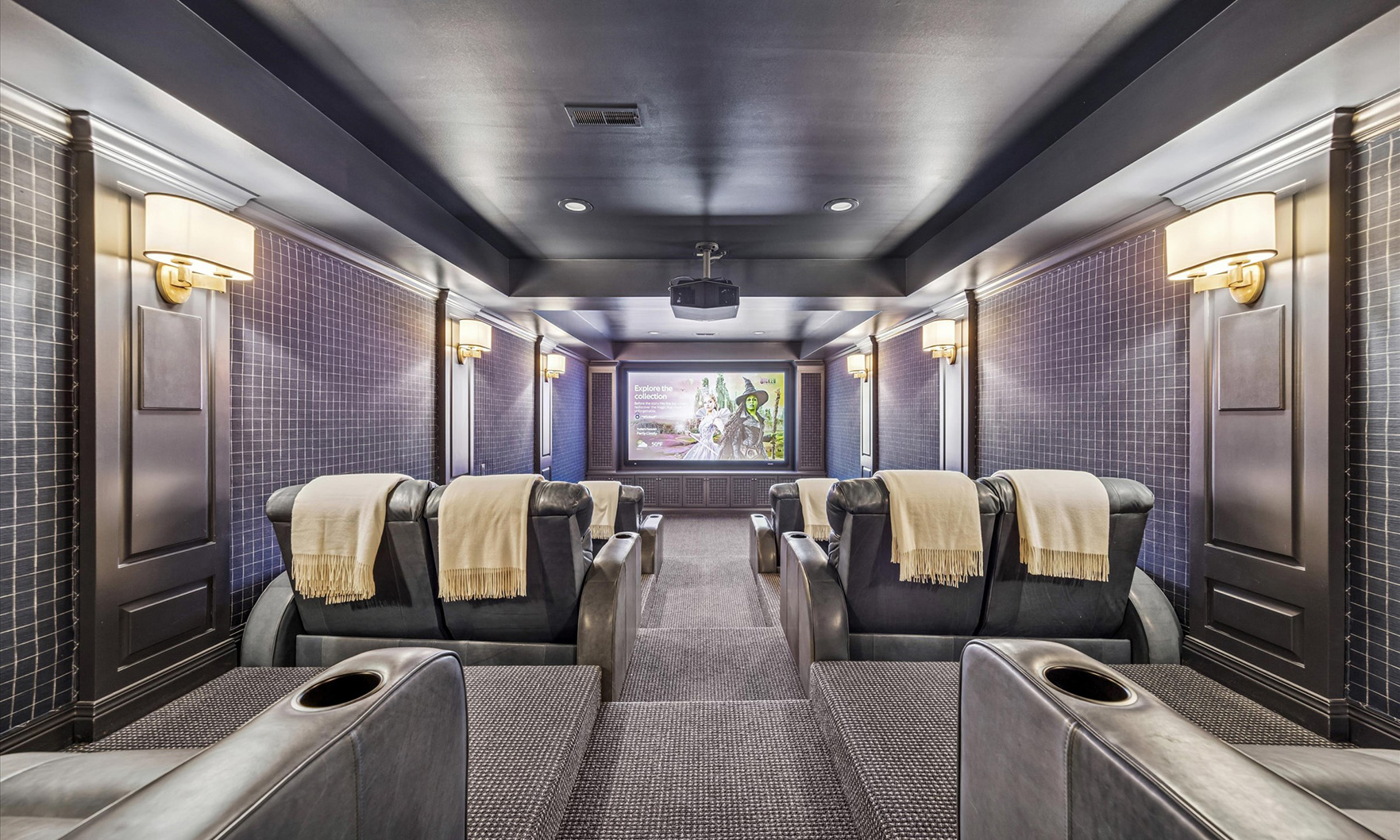 The landscape architecture, designed by Craig Bergmann of Lake Forest, provides the finishing touches that makes this home feel like a north shore home in the heart of Kane County. The large entertaining kitchen features a custom hood and 12×5 honed Calacutta island and countertops, along with the butler’s pantry and powder rooms being Calacutta. The primary bath boasts Carrara and soapstone finishes the walkout basement kitchenette, theater and lower level family counter spaces. The 12-seat theater is upholstered with gorgeous Ralph Lauren fabric and sumptuous leather seating. Billiards room, kitchenette, exercise room and family room all have heated limestone floors. The home has six fireplaces.