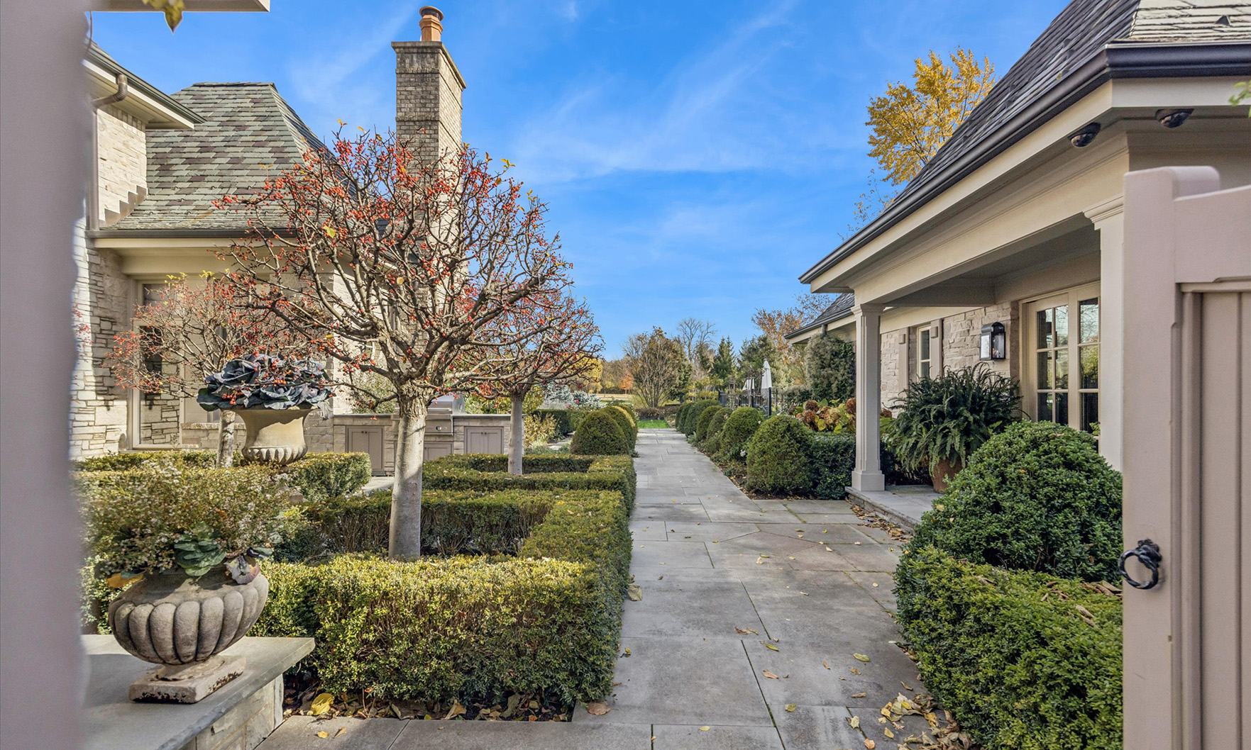 This home was recently featured in Traditional Home magazine and showcased on the cover, with interior photography included in renowned interior designer Mark Sikes’s latest book, Forever Beautiful. This lovely French Normandy-inspired stone custom home was built in 2007 by Havlicek Builders and exudes casual elegance. You’ll notice the patina and permanence of the home by the lovely aged slate roof, copper gutters, bluestone and limestone. Located just 35 miles west of Chicago, this home offers 11,880 square feet of finished living space and is set on 3.64 acres, with an additional four acres available.