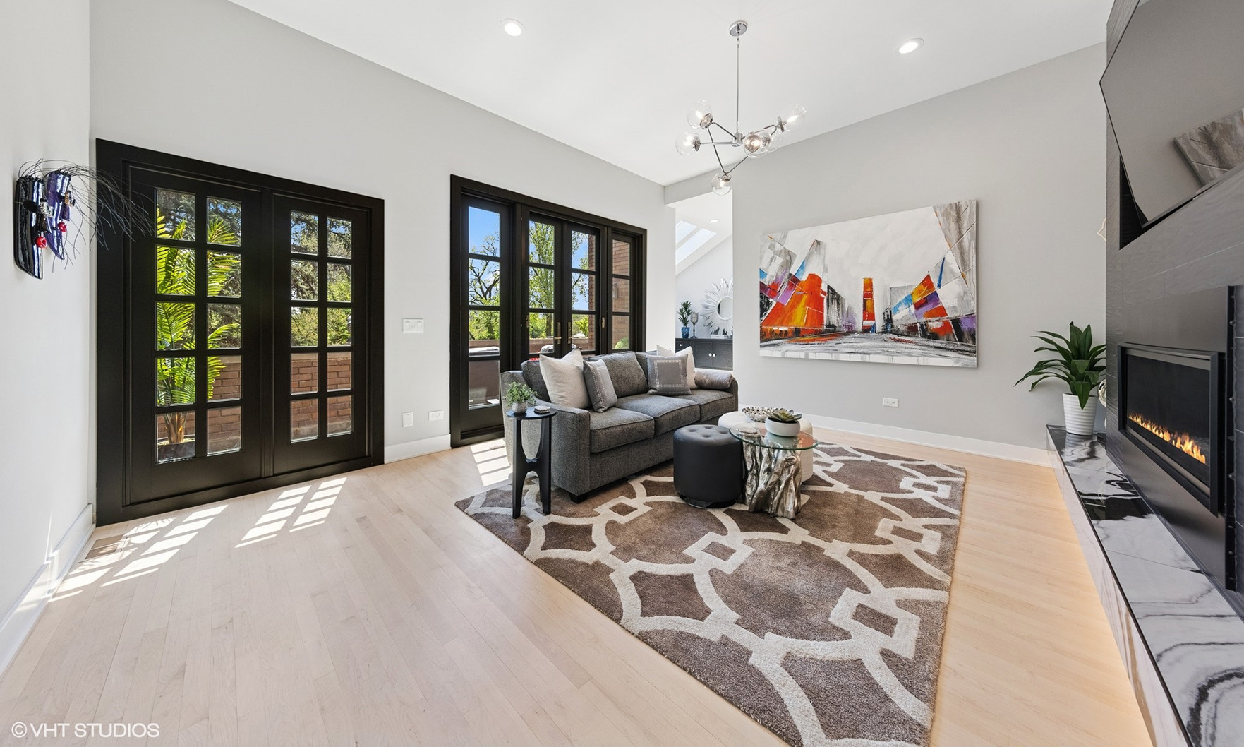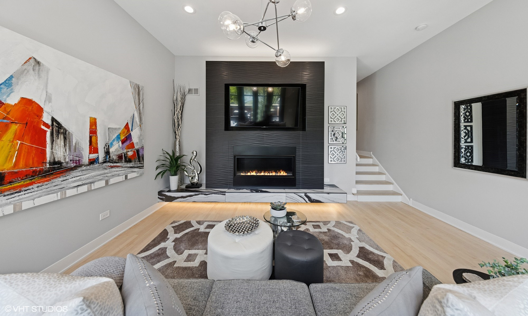 No detail was overlooked in the complete renovation — featuring brand-new electrical, plumbing, windows, flooring and doors, plus a fully redesigned open-concept layout. A stunning kitchen with custom cabinetry and high-end finishes flows seamlessly into an inviting dining area and a statement fireplace feature wall. The thoughtful redesign includes the creation of a third bedroom with a window on the ground level and an expanded full bath, perfect for guests or multi-generational living. Entry into the home is through the heated garage, which includes two personal parking spaces and a private storage closet — a rare and practical luxury.