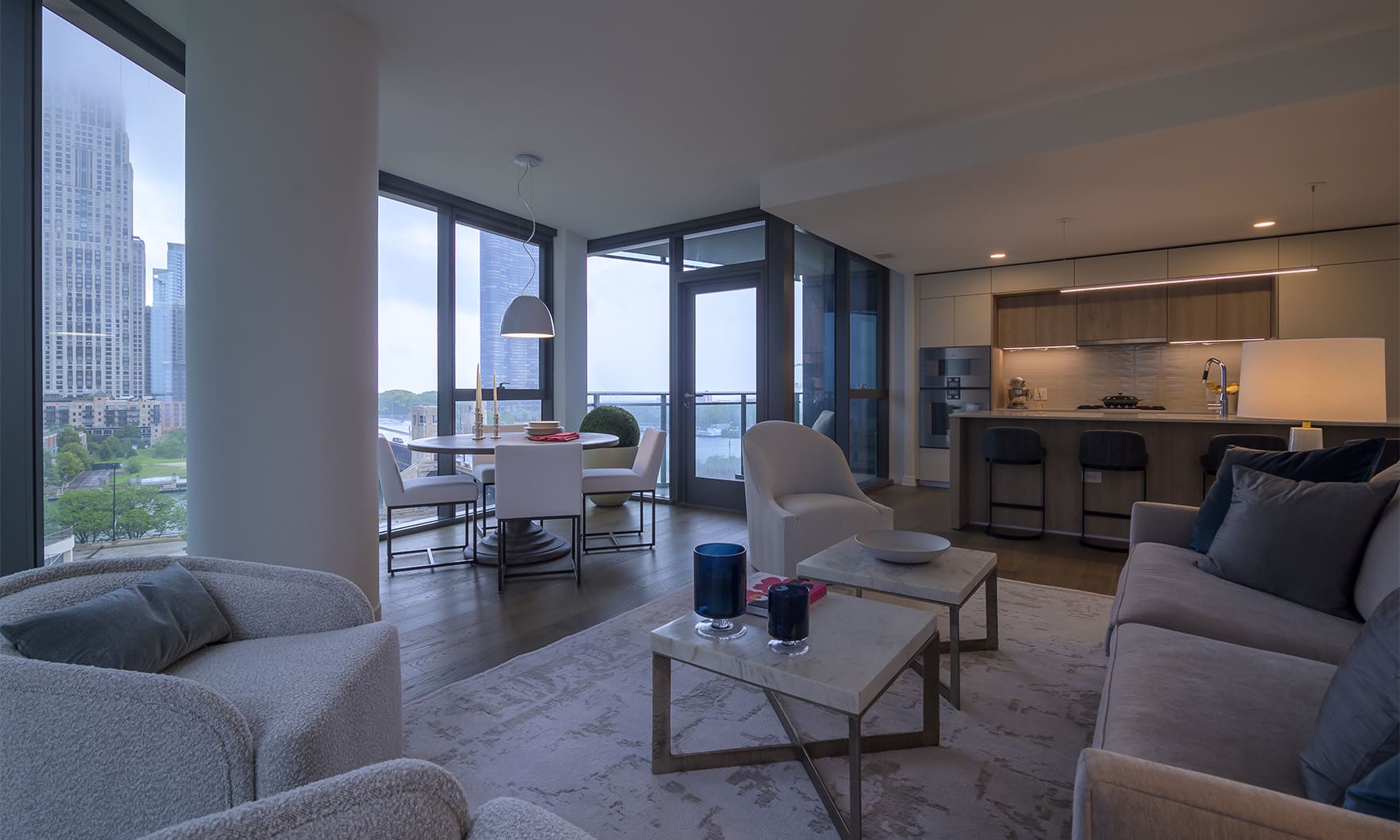 This 1,553-square-foot, three-bed, two-bath residence has views of the city and Navy Pier through floor-to-ceiling windows and an outdoor terrace. Luxury finishes include Snaidero cabinetry, Dornbracht fixtures, built-in Gaggenau appliances, quartz countertops and hardwood flooring throughout. Lakefront living at Cirrus Condominiums, the crown jewel of Lakeshore East, with 48,000 square feet of resort-style amenities.