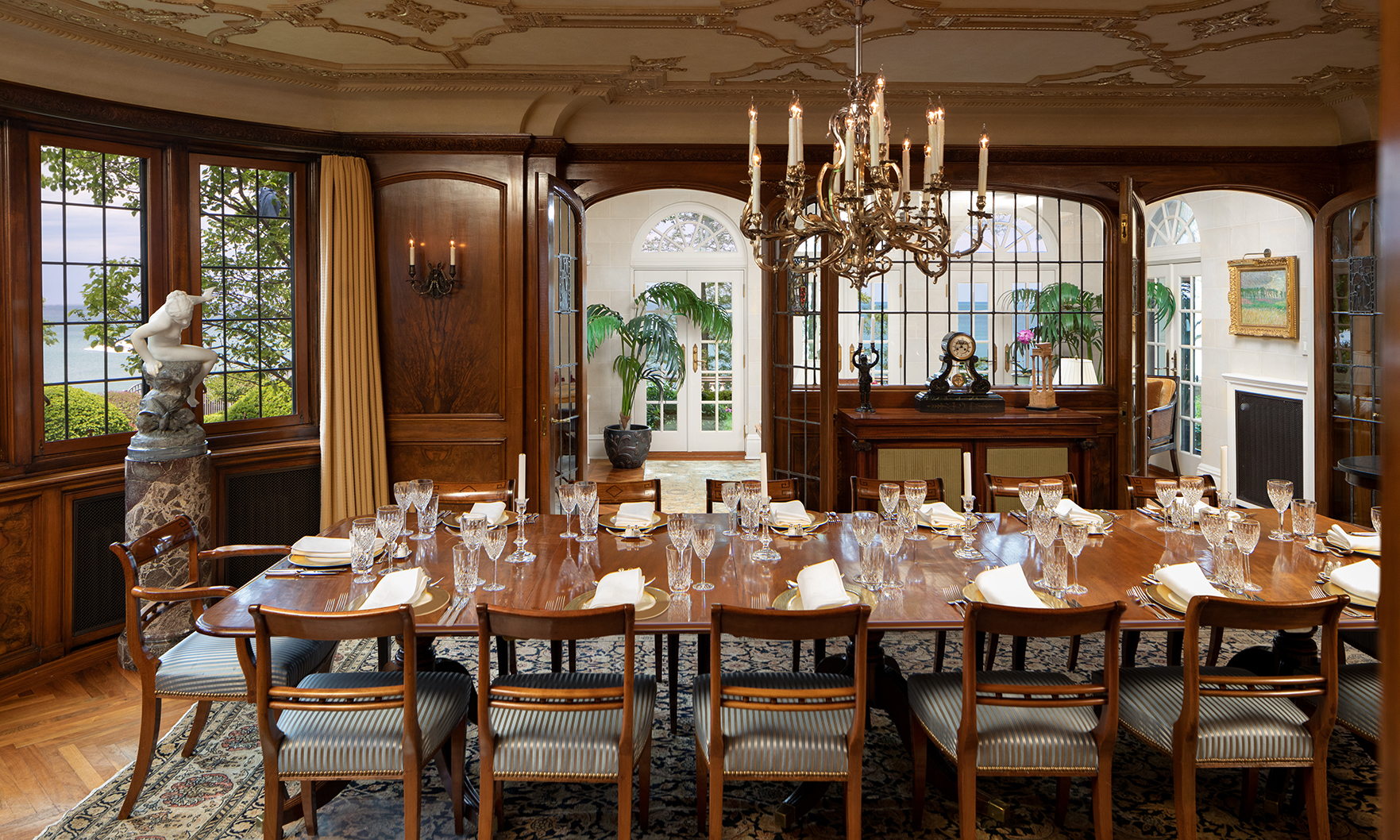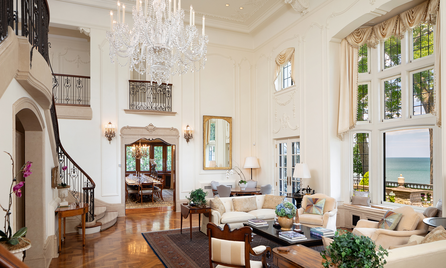Located at 419 Sheridan Road, the 22-room mansion was built by the son of magazine publisher Henry Haven Windsor in 1929. The “Windsor House” spans 13,894 square feet and offers seven bedrooms, nine bathrooms and four half-baths.