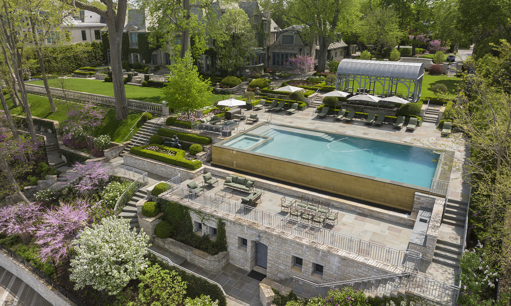 Beyond the pool, the North Shore estate boasts a 223-foot private sandy beach on Lake Michigan, a boardwalk and a commercial-grade boathouse that can accommodate a ski boat, jet skis and other watercraft.